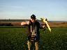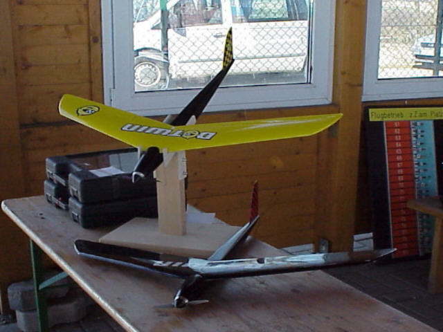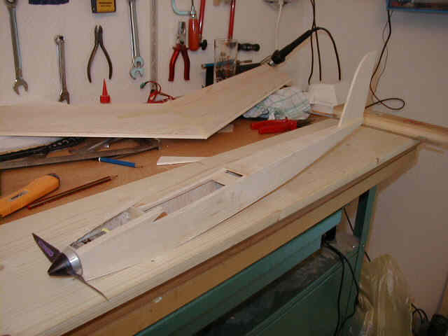Da die V2 noch besser und vor allem schneller als die V1 flog und ich keine Lust mehr hatte, noch mal einen Balsarumpf zu bauen, dachte ich mir ein GfK Rumpf wär´s doch :). -------------------------------------- Ein Bekannter aus RC-Network war so nett ein paar 3D CAD Zeichnungen zu machen. Danke Jürgen!! Nachruf Tja dummerweise hat der Kleine den Vatertag nicht überstanden :(. Ein Zucker auf Quer in sehr niedriger Höhe haben den Kleinen umgebracht. Dummerweise ist er in ein Weizenfeld eingeschlagen. Nachdem ich eine halbe Stunde gesucht habe, hatte ich ihn auch wieder gefunden. Die Fläche hat nichts, aber der Rumpf ist wie immer kaputt. Da ich keine Lust mehr habe einen Balsa Rumpf zu bauen, wird die Fläche warten müssen bis die Rumpfform fertig ist. Mal sehen... gestern Abend habe ich dummerweise erst mal das Urmodell platt gemacht :( -------------------------------------- Er lebt wieder! Nach Ewigkeiten hab ich nun den ersten brauchbaren Gfk-Rumpf ein wenig schwarz lackiert und die alte Fläche draufgeschraubt. Ist ja schon ein wenig peinlich einen Flieger verkaufen zu wollen, wenn man selbst nicht mal einen zum Vorfliegen hat!?!
