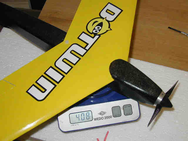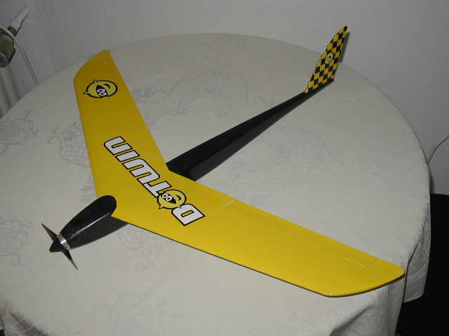 Ausstattung Der Prototyp des V2 fliegt mit Speed 400/6V verdreht an einer Graupner CAM 4,7x4,7 mit 7x500AR, 2xC2081 auf den Rudern, Kontronik Rondo400 und einem Simprop Pio2000 Empfänger mit "optimierter" Antenne. Der MPX Piko 4/5 wurde ersatzlos gestrichen. Für Entwurf und Planung sind Hartmut "Siggi" Siegmanns graue Zellen verantwortlich! -------------------------------------- Die Dotwin Geschichte Entstanden ist der Dotwin, oder genauer sein Vorfahre, im alten RCO. Dort stand am Anfang die Frage: Gibt es einen Speed 400 Pylon Nuri? Das, was daraus entstanden ist hörte auf den Namen Mini Killer. Ein bischen pummelig, aber sehr gutmütig und mit einer Auslegung, die auf jeden Fall fliegen wird! Wer es noch genauer wissen will, sollte einmal bei Siggi´s Ausführungen reinschauen. Er schreibt sehr anschaulich, dass sogar ich ein bischen was davon verstehen kann :). -------------------------------------- Dotwin V1 Der erste Entwurf war so ausgelegt das er auf jeden Fall fliegen würde! Für "Unseren" ersten Prototyp hat Siggi noch mal ein bischen am Profil gefeilt und herausgekommen ist der Dotwin V1. Da Siggi nie Zeit hat, haben Chris und ich das bauen je eines Prototypen übernommen. Herausgekommen ist ein schnuckeliger, kleiner und schneller Flieger. Ach ja... einen kleinen Tipp noch! Die wichtigste Regel beim Dotwin ist: Keine Angst vor den Start! Diese Angst hat mich immerhin 2 Rümpfe gekostet. Irgendwie hab ich immer Leute werfen lassen, die das nicht wirklich drauf hatten :(. Dabei ist es wirklich total einfach. Startstellung programmiert, bischen Anlauf und weg das Ding. Gerade und leicht nach oben. Seit dem ich das beherzige und keinen anderen mehr ran lasse, habe ich nie wieder beim Start einen kaputt gemacht! Leider ist dem V1 eine kapitale Störung mit einem Piko 4/5 in die Quere gekommen. Bei diesem Einschlag ist nicht nur der Rumpf kaputt gewesen, sondern auch die Fläche gestaucht worden, und ein Getriebe hat Karies bekommen. Zur Sicherheit hab ich den Quarz gleich mit zwangbestattet. Alles zusammen also ein Totalschaden :(. Da war nicht mehr viel zu retten. -------------------------------------- Dotwin V2 Nun musste etwas neues und noch schnelleres her. Also hat Siggi noch ein bischen mit der Profil Feile hantiert um noch ein bischen mehr rauszukitzeln. So wurde nun endlich der Dotwin V2 geboren. Die CAD Zeichnungen hat netterweise Jürgen "ddraser" Dehmel gemacht und zur Verfügung gestellt.